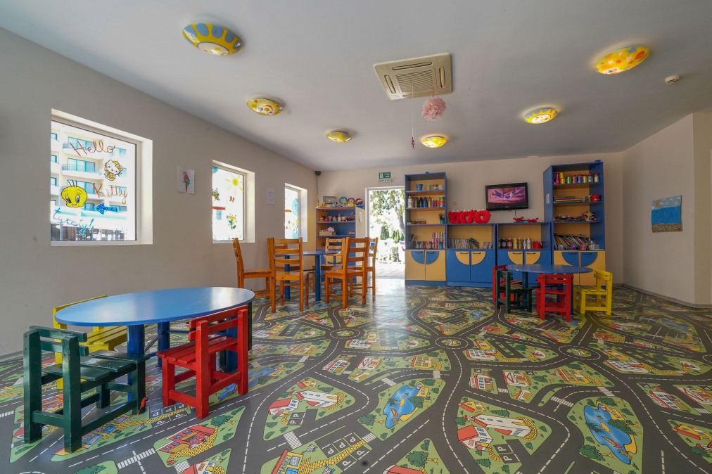- Безплатни услуги: мини клуб за деца от 4г. до 12г., детска площадка, професионален детски аниматор, мини диско всяка вечер, детски басейн с водна пързалка, бебешка кошара, столчета за хранене, детско меню в а-ла-карт ресторантите