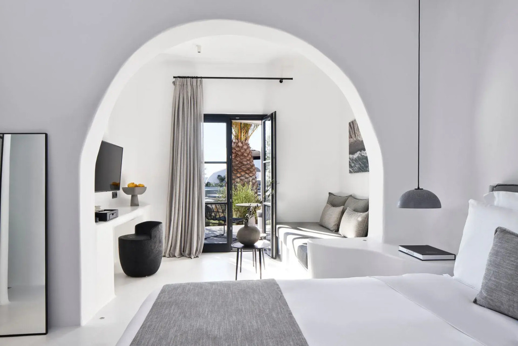 Nestled in the idyllic setting of Imerovigli, this enchanting traditional hotel seduces visitors by the charming facets of the north-west coastal region of Santorini, where to enjoy a wide offer of leisure activities and beautiful beaches. This elegant establishment showcases a wide variety of accommodation options, including lovely studios and villas, some of them featuring a private pool. Guests may completely kick back and unwind in the spacious and well-lit units, where commodious furniture and top-notch amenities were provided to afford a truly enjoyable stay. Travellers may take advantage of the rich American breakfast and dine on a selection of savoury dishes at the terrace a la carte restaurant. On warm days patrons may take a cooling dip in the dazzling pool or relax in the outdoor Jacuzzi while the younger guests romp at the paddling pool or at the children's playground.
