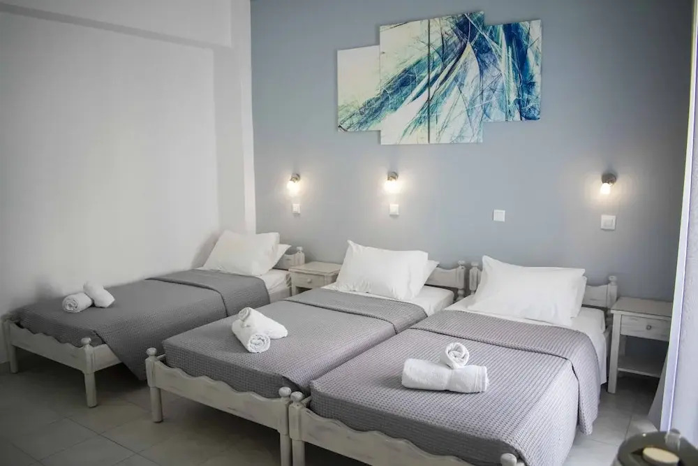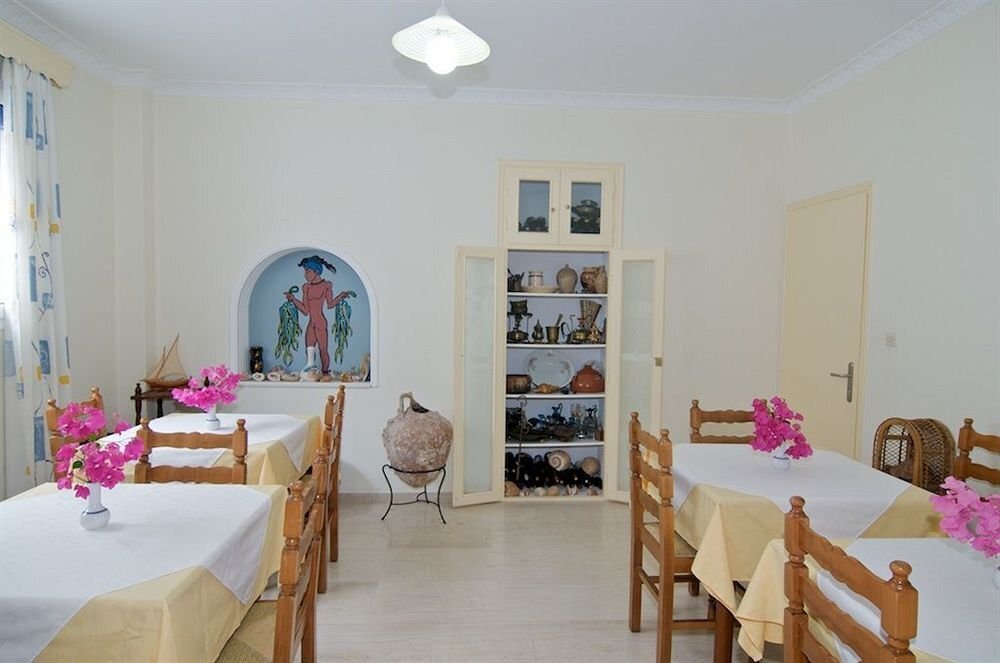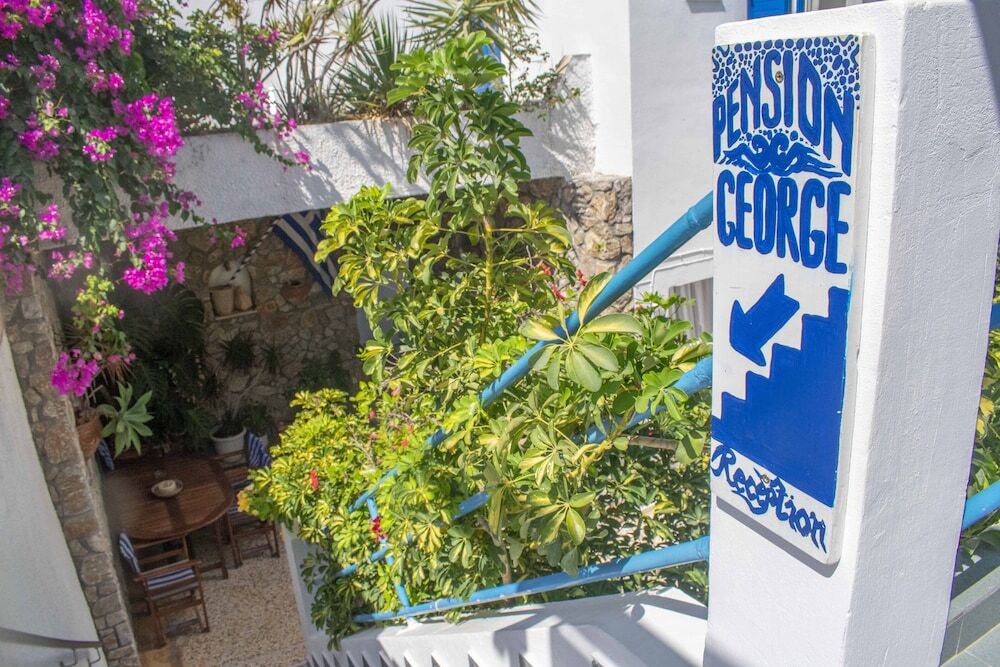 Семеен пансион на отлично място точно в центъра на острова. Той е само на 15 минути пеша до столицата Тира и на 10 минути с автобус до плажа. Разположен в традиционното село Картерадос, където има офиси за коли и мотопеди под наем, кафе-барове, таверни, туристически офиси и минимаркети, плюс пералня и пекарна са наблизо. Pension George разполага с 25 стаи, всяка със самостоятелна баня, сейф и хладилник. Някои стаи са оборудвани с климатик и/или кухня, а някои имат сателитна телевизия. В целия имот има безплатен WiFi достъп до интернет.