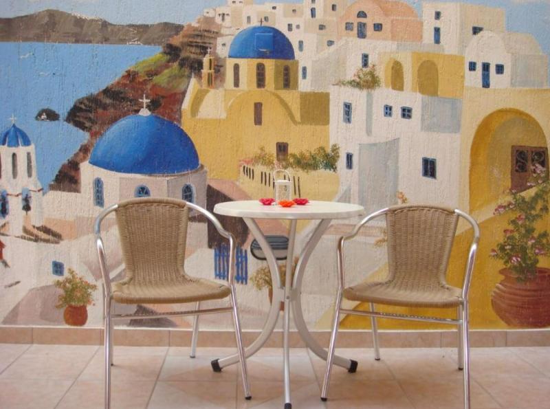 Резиденцията се намира на много тихо място в Тира, столицата на Санторини, на 100 м от центъра. Намира се само на няколко метра от централния площад, където магазини, таверни, кафенета и барове предоставят всичко, от което един пътник може да се нуждае. Националното летище Санторини е на около 5 километра. Климатизираният хотел е построен през 1983 г. и реновиран през 2009 г., като предлага 18 стаи. Това е модерна сграда в светли цветове, включваща обществен компютър с безплатен безжичен достъп до интернет и закрит плувен басейн, където гостите могат да се насладят на освежаващо плуване независимо от сезона. Семейният хотел предлага релаксираща атмосфера във всички свои комфортни и просторни стаи със самостоятелен санитарен възел, които разполагат със самостоятелни балкони, климатик и редица други полезни удобства.